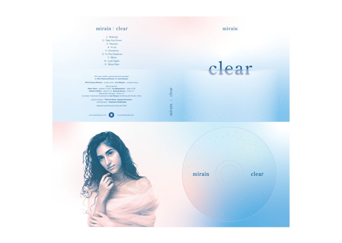 MIRAIN is the author of both the music and the lyrics to the songs in the album with the emblematic name "Clear", and the arrangements are done by Ivan Shopov - musician, producer, composer, and artist. Clear mixes indie, electronic, pop and other musical styles. Music critics define MIRAIN's unique style and voice as an unusual mix between Billie Eilish and Dolores from The Cranberries, with a rich dose of modernity and hints of futurism. It is commented in art circles that MIRAIN's talent has the potential to usher in a new era in Bulgarian music, unlocking it to world fame. Everything that MIRAIN wants to share with the public is summed up in the name of the album "Clear" - a symbol of the innocent, pure, transparent. The album is an expression of feelings and events and carries within itself sincerity. Each song tells about an inspiring situation for the author, from which life lessons were obtained, and the messages that the album aims to convey are simple but fundamental: One should never lose faith in oneself and underestimate oneself; There is a way out of every situation; All our limits are where we set them.